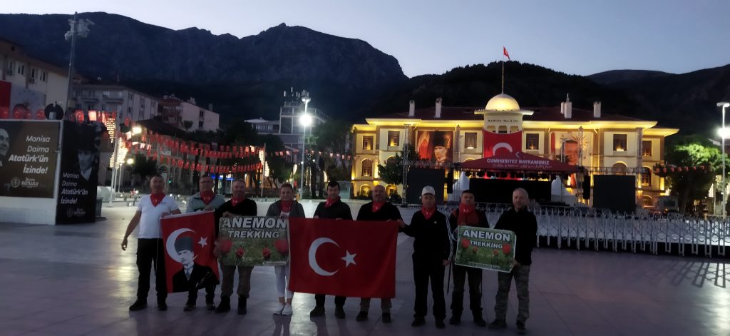Manisa Anemon Trekking Spor Kulübü ve Manisa Büyükşehir Belediyesi organizasyonuyla 10 dağcı Manisa Cumhuriyet Meydanında Saat 07:00’de buluştu. Toplu fotoğraf çekimi sonrası yürüyerek Manisa Şehitliğine geçildi.